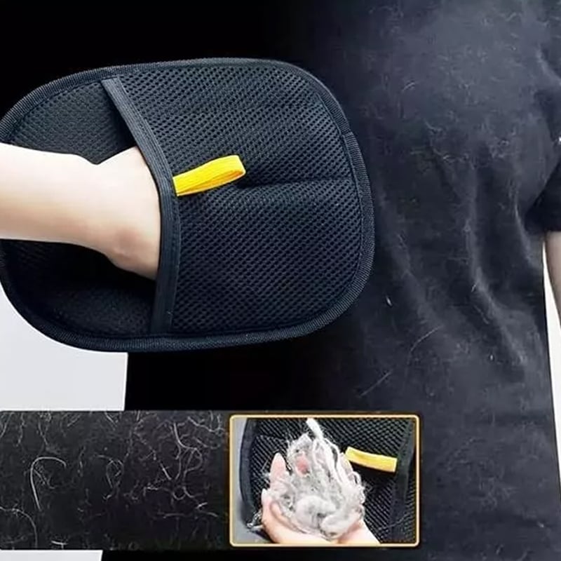 Statisk-fri teknologi: Hanskens unikke antistatiske design gør hårfjernelsen hurtigt og nemt, hvilket sikrer, at hårene hænger fast i hansken og ikke på omkringliggende overflader.