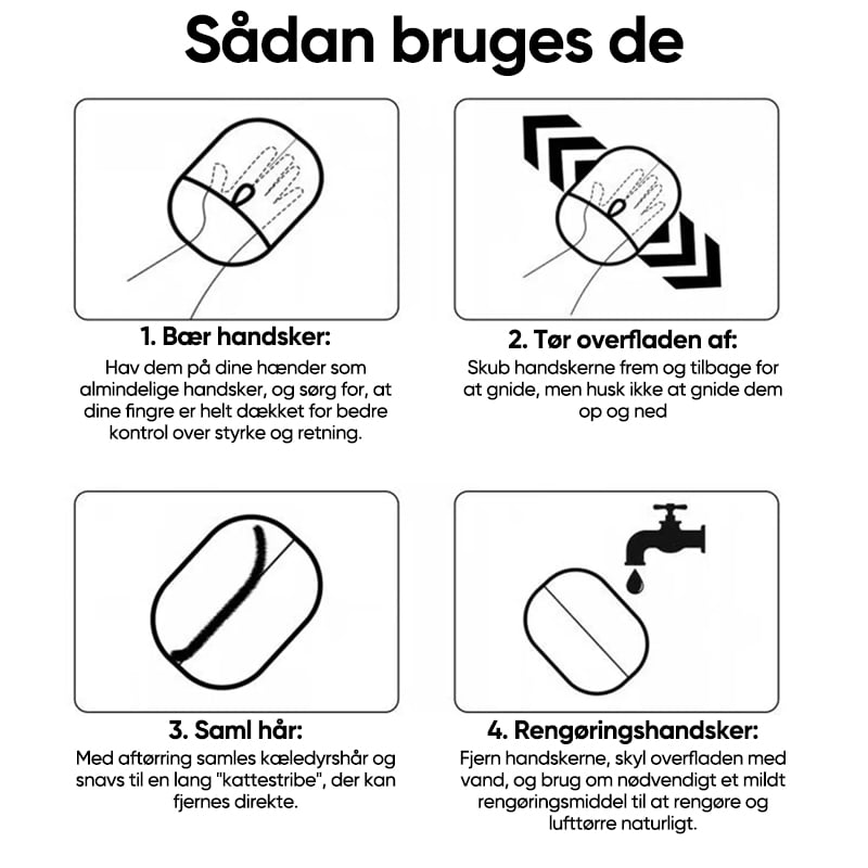 Nem at bruge: Træk blot hansken over enhver overflade med dyrehår, og se hvordan hårene nemt fjernes.