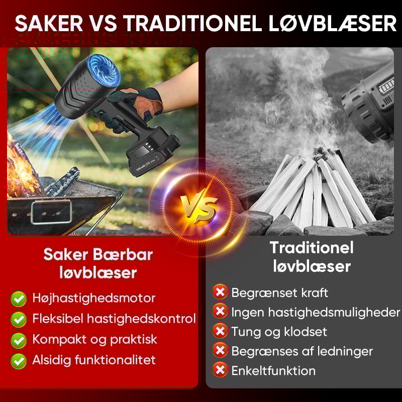 Multifunktionel brug: Ideel til støvsugning, løvblæsning, vedligeholdelse af grill og biltørring, hvilket gør den til et alsidigt værktøj til forskellige formål. Den er praktisk at opbevare og nem at transportere.