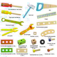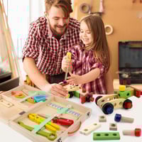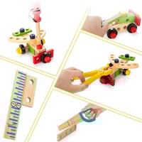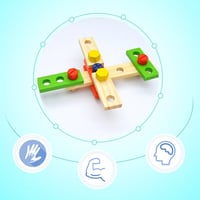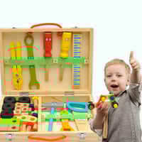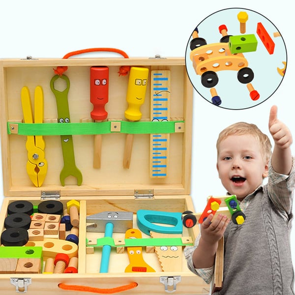 Tilskynd til kreativitet og praktisk læring med denne legetøjs værktøjskasse i træ, perfekt til små byggemestre, der kan nyde timevis af underholdning med at samle og skille skruer og møtrikker ad!